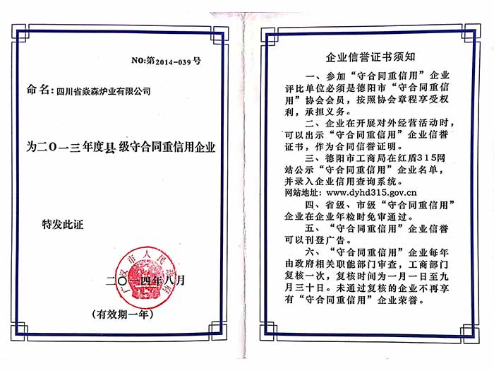 四川省焱森爐業(yè)有限公司注冊資金1200萬元,生產(chǎn)車間近1萬平方米,是一家集生物質爐研發(fā)、設計、生產(chǎn)、銷售、服務、技術咨詢于一體的國家高新技術企業(yè)。公司技術力量雄厚,生產(chǎn)設備齊全,工人技術熟練,所有產(chǎn)品嚴格按照國家相關標準及ISO9001:2008質量管理體系實行模具化、規(guī)范化生產(chǎn),年產(chǎn)能力達15萬臺以上。公司擁有建全的14001環(huán)境體系認證及18001職業(yè)健康安全體系認證。我公司擁有自己的知識產(chǎn)權及自主品牌“焱森”,是國家高新技術企業(yè),擁有54項專利。
